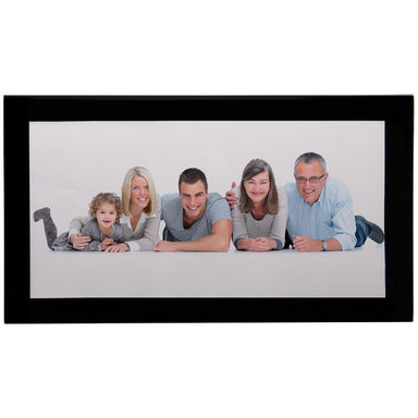 This black plastic panoramic picture features a slim minimalistic design and includes thick clear plexiglass that protects the photo The black pho...