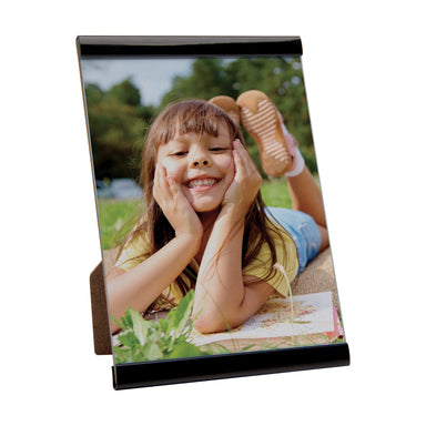 Insert size: 4" x 6"Glass Picture Frame with Metal StandItem number: 606550 Insert size: 4" x 6" Beautiful simple and modern glass picture frame wi...