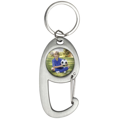 Insert size: 1" diameter Brushed silver metal carabiner with keyring Perfect for displaying school and sports photos Part of the Photo Lux Line I...