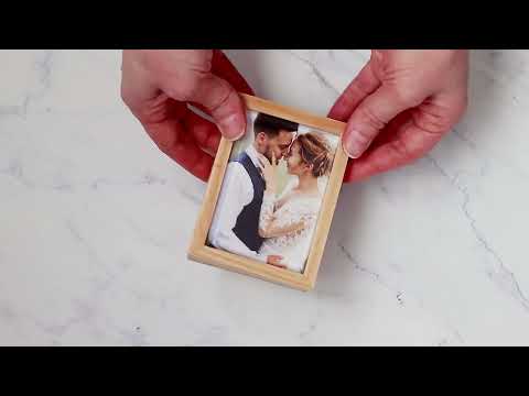 - To insert photo move the swivel closure on the inside of the box lid, pull off the backing, place your photo inside, and replace the backing