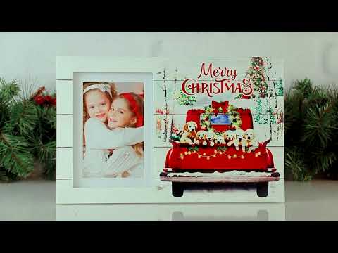 This classic Merry Christmas frame is perfect for showing your favorite holiday memories, photos with Santa Clause, and much more!