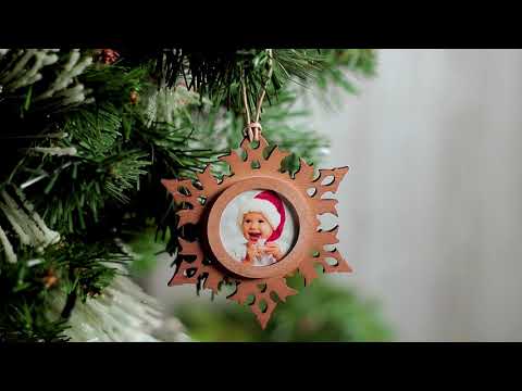 - Wood photo ornaments are laser cut, and made out of a dark wood