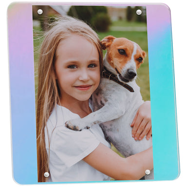Insert size: 1-3/4" x 2-3/4" Available colors: black, blue, pink, purple Easy snap-in lens Each holds one photo Call for custom imprinting options