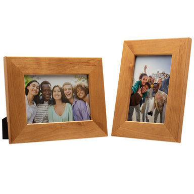 Overall size of the frame is 6.5" x 0.5" x 8.375" and weighs 0.57 lbs Frames are made of 80% Alder wood, and 20% MDF wood Can hold one vertical o...