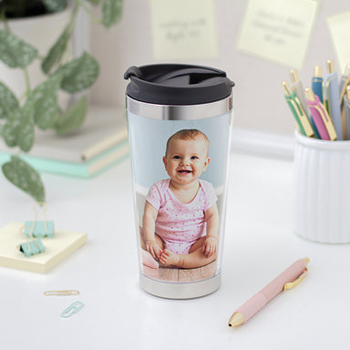 Part of the new generation of sublimated products, these photo travel mugs can be printed on directly with sublimation inks but do not have the ext...