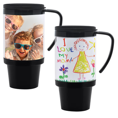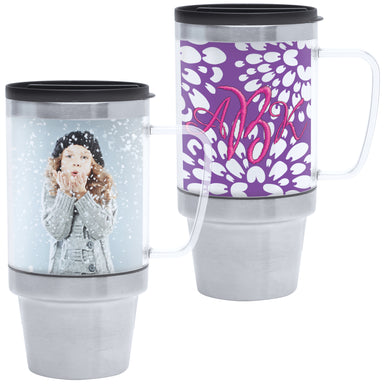 These photo travel mugs are perfect for those on the go! Sold in a case of 24, these photo mugs are perfect for event giveaways, group party favo...