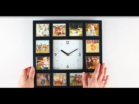 - Photo clocks are made of plastic, have a wall mount on the back to hang with ease, and require one AA battery to operate which is not included