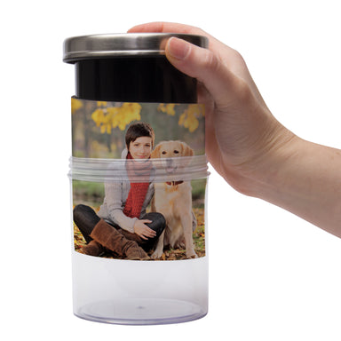 11" x 4" insert Easy twist to open assembly Holds 12 oz. standard beverage can Personalize with any photo or artwork Individually boxed ...
