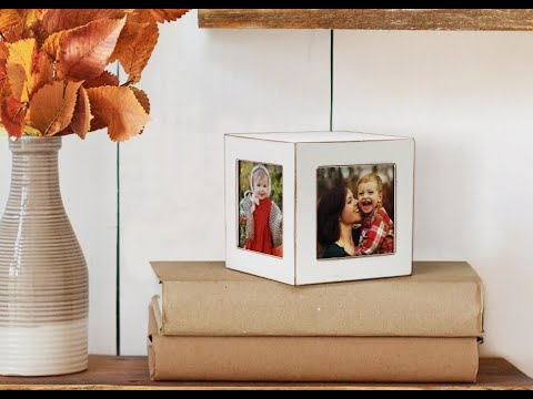 - Photos are inserted through the bottom of the cube, remove the latch on the bottom to release the lid, remove the lid, and then remove the inner covers, insert your photos, replace all the covers/lids, and your picture frame cube is ready to display