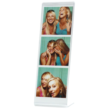 Insert size: 2" x 8"Photo Film Strip Easel FrameItem number: 2928 Insert size: 2" x 8" Acrylic bent easel frame Photo strip slips in the side Grea...