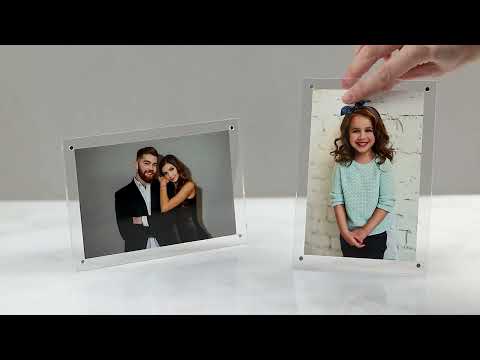 Agregue un toque de elegancia a su exhibición de fotografías con estos marcos de acrílico con un magnífico respaldo de caballete de metal.